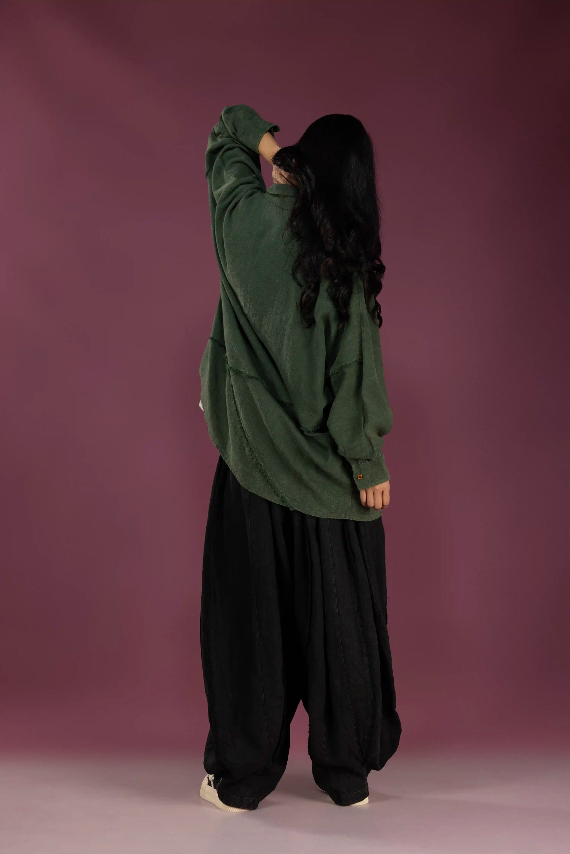 Billowing linen pants crafted for ease and edge. Their fluid drape and wide silhouette make them a quiet statement, versatile enough for everyday wear, bold enough for distinction.