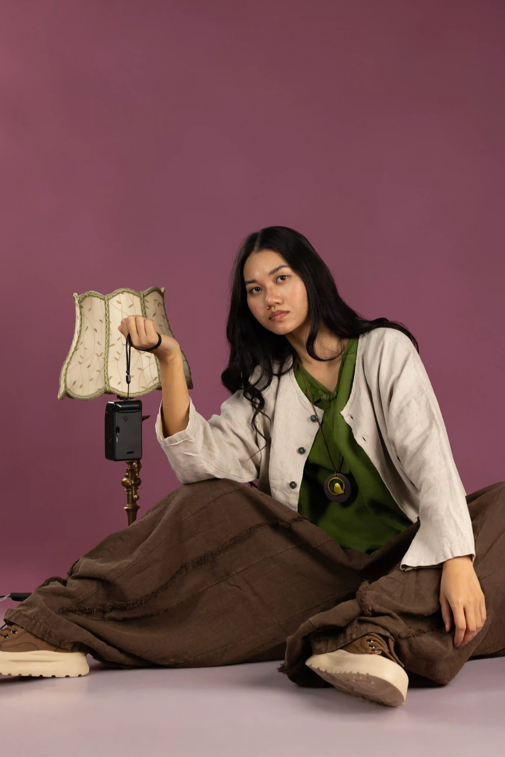 - Fabric: 70.8% ramie, 29.2% cotton — breathable with natural texture