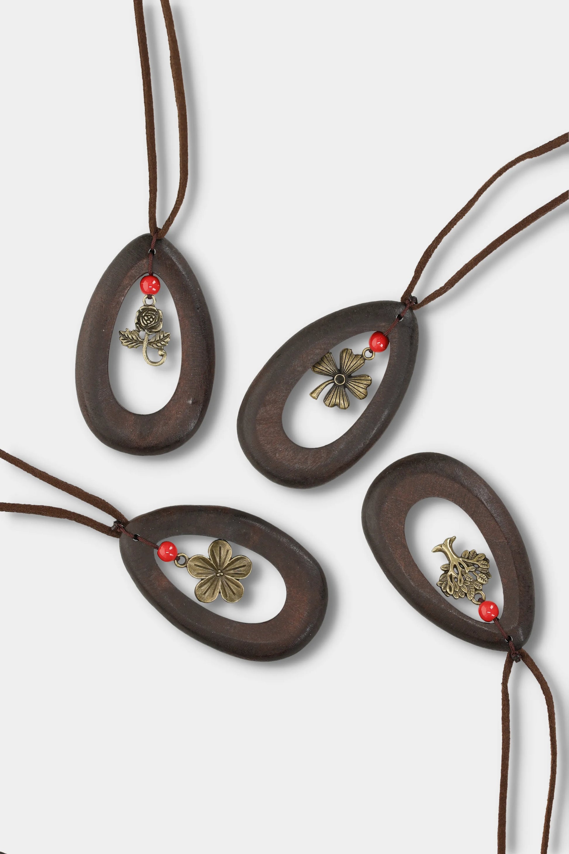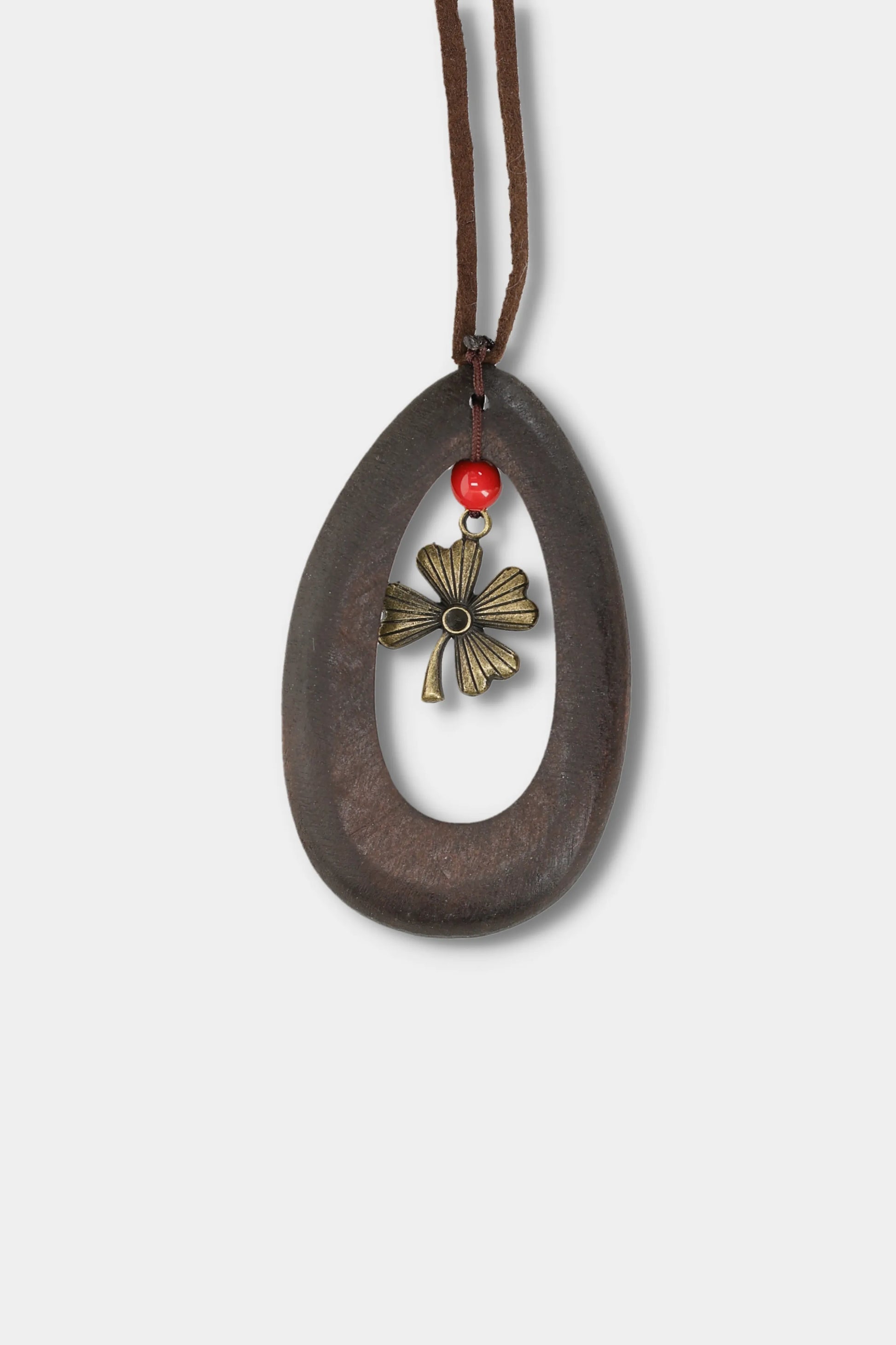 - Wood Teardrop Clover Pendant Necklace (Walnut)